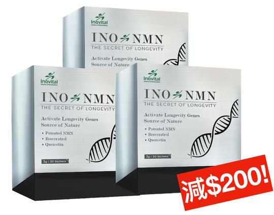 INO NMN賦活寶每份含”專利NMN原料”,輔以青春之泉的白藜蘆醇及植物多酚的榭皮素,有助於刺激抗衰老機制,活化長壽基因,進而恢復年輕。